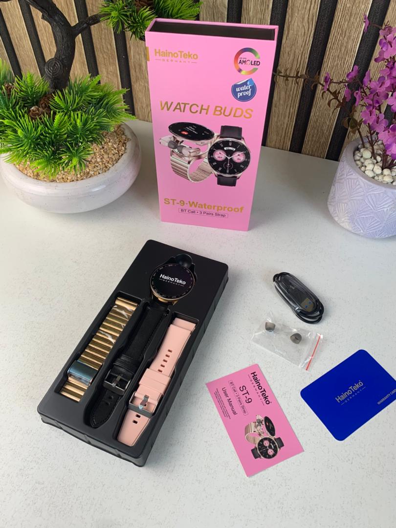 اكتشف ساعة Haino Teko ST-9 الألمانية، التي تجمع بين الساعة الذكية وسماعات البلوتوث اللاسلكية في تصميم أنيق وعملي. مثالية لعشّاق الأناقة والتقنية، وتأتي بثلاث أساور مختلفة لتناسب كل مناسبة! 💼🏋️♂️🎶